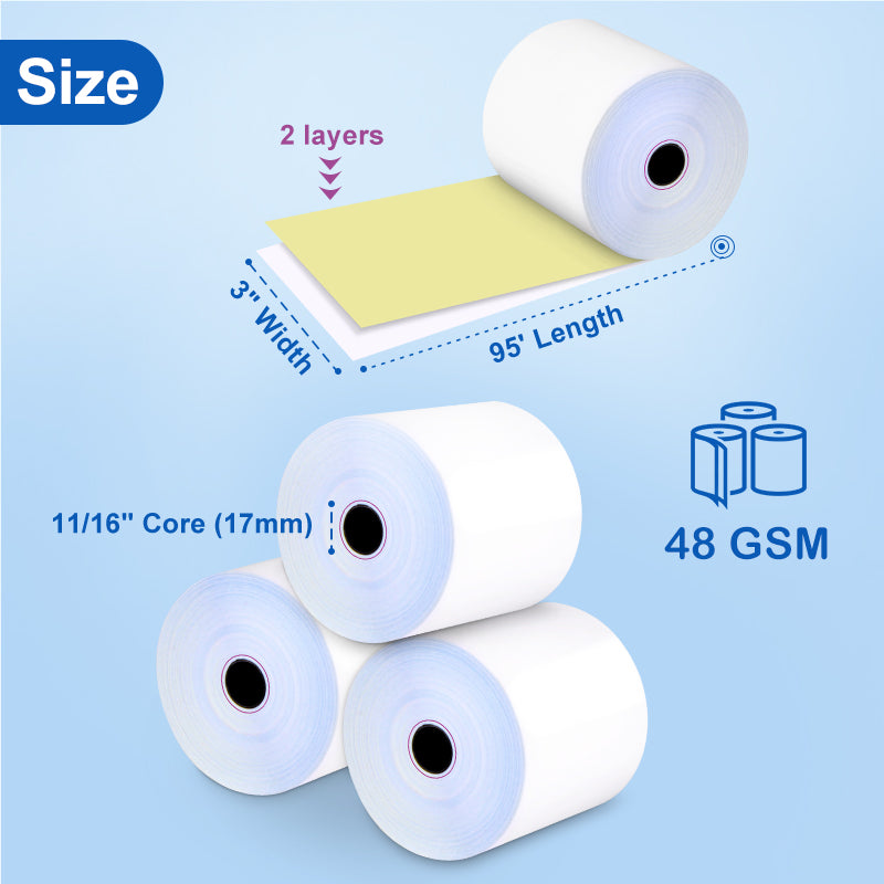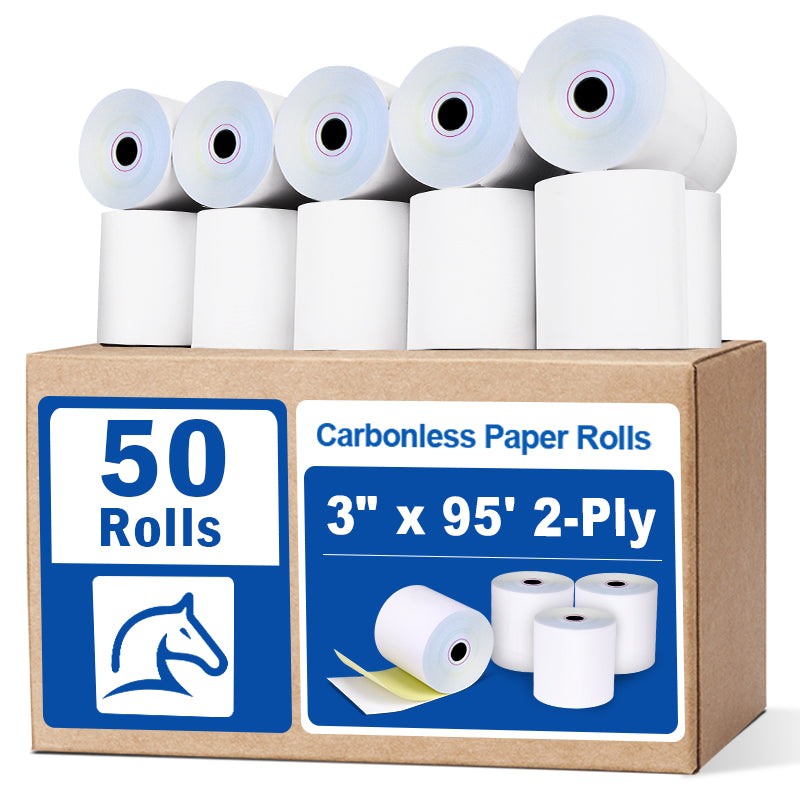 3‘’x95’ Carbonless Rolls 2-Ply Cash Register POS Paper Roll Tape - 50/Pack