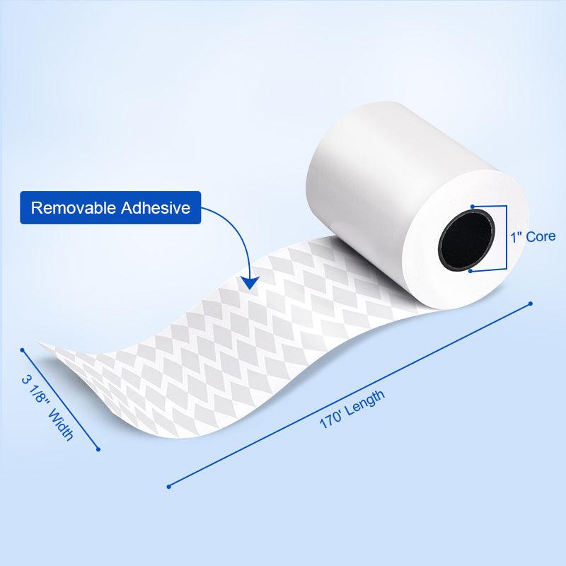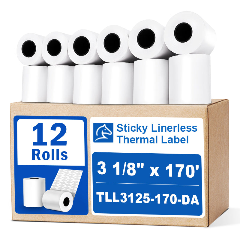 3 1/8“ x 170' Sticky Linerless Thermal Label Rolls (12 rolls)